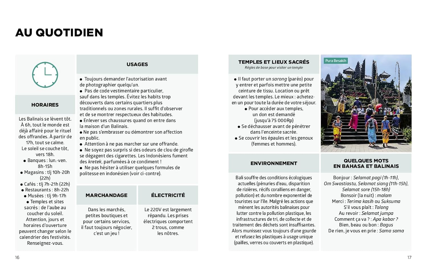 des informations pratiques claires et synthétiques, et de nombreuses photos.