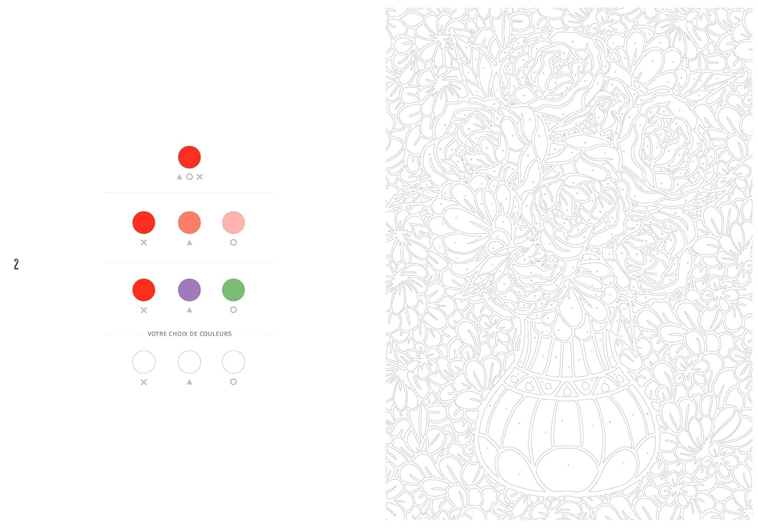 découpée en zones. Il suffit de colorier les zones dotées d’un symbole (croix,