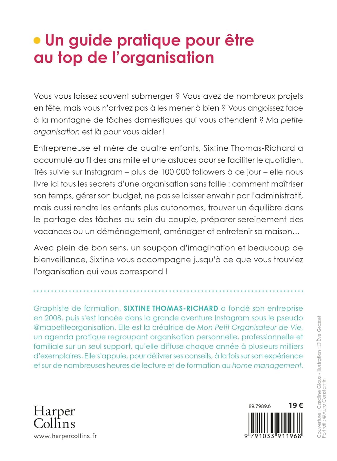 Sixtine Thomas-Richard, entrepreneuse et mère de quatre enfants, partage ses astuces pour faciliter ton quotidien. Que ce soit pour la gestion du budget, l'organisation de la maison ou la planification des tâches domestiques, ce livre couvre tous les aspects pour t'aider à retrouver une vie équilibrée.