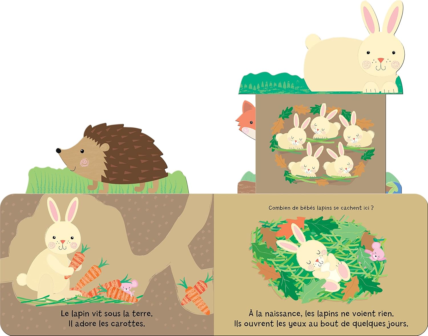 Un adorable livre interactif avec 4 tirettes pour découvrir les animaux qui se promènent dans la forêt. Promène-toi dans la forêt et actionne les jolies tirettes pour découvrir les bébés animaux qui s'y cachent ! Une petite souris t'accompagne au fil des pages, amuse-toi à la chercher ! Un adorable livre interactif pour développer le sens de l'observation des tout-petits.
